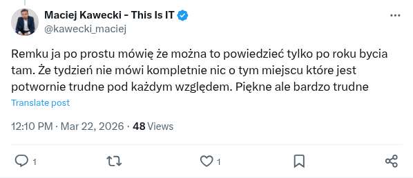 @KinasRemek @JurekLoo Remku ja po prostu mówię że można to powiedzieć tylko po roku bycia tam. Że tydzień nie mówi kompletnie nic o tym miejscu które jest potwornie trudne pod każdym względem. Piękne ale bardzo trudne
