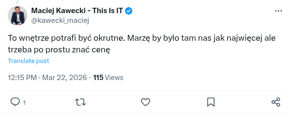 @KinasRemek @JurekLoo To wnętrze potrafi być okrutne. Marzę by było tam nas jak najwięcej ale trzeba po prostu znać cenę