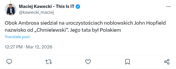 @mat_malinowski Obok Ambrosa siedział na uroczystościach noblowskich John Hopfield nazwisko od „Chmielewski”. Jego tata był Polakiem