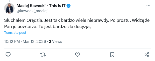 @DanielKrzywick2 Słuchałem Orędzia. Jest tak bardzo wiele nieprawdy. Po prostu. Widzę że Pan je powtarza. To jest bardzo zła decyzja,
