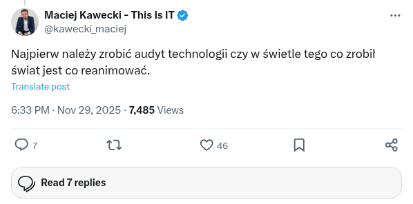 @WojciechUrban11 Najpierw należy zrobić audyt technologii czy w świetle tego co zrobił świat jest co reanimować.