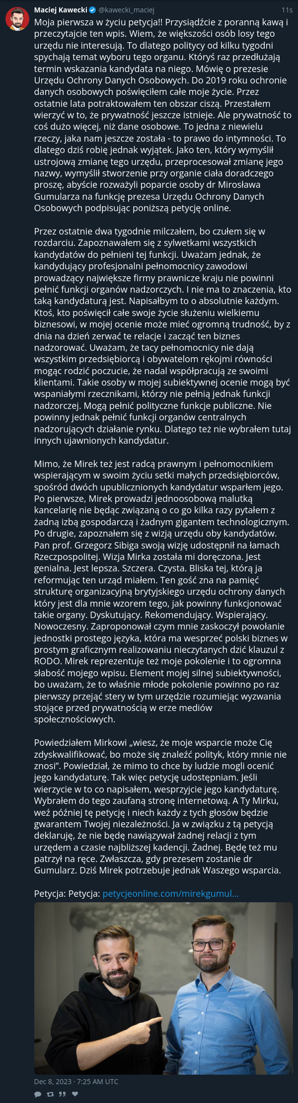 Teraz Wam opowiem historie z dziś. Przyjaciel bardzo cierpi na ból kości. Taki nienaturalny. Potworny ból. Jest na morfinie. Wszystkie badania wykonane. Wszystkie. Lekarze nie postawili diagnozy. Zrobili mu PET. Lekarze mówią, że nie widać na nim poważnych zmian ogniskowych - słowem wszystko w porządku. Załadowaliśmy kilka obrazów w Chat GPT i poprosiliśmy o pomoc. Zrobił to. Chat GPT wskazał po chwili szpiczaka. Nie chcę by ten Twitt był interpretowany jako coś więcej, niż jest w nim napisane. To czysty opis stanu faktycznego. Nie wiemy jeszcze, czy jego wskazanie jest trafne. Może się myli. Bez wątpienia jednak czeka nas rewolucja obrazowania z wykorzystaniem AI. O szczegółach poinformuję. I nie zachęcam NIGDY do szukania w takich narzędziach źródła wiążących Was porad medycznych.