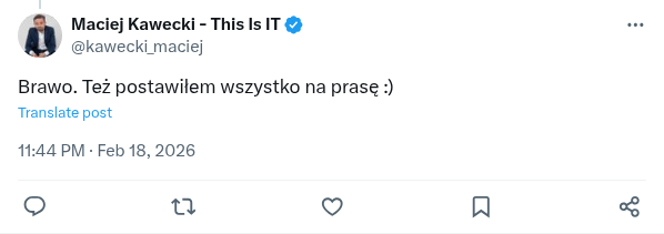 @Pawel @nawacki @annawitten @WojtekKardys @piotrmiecz Brawo. Też postawiłem wszystko na prasę :)